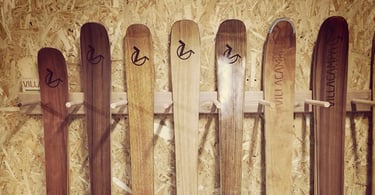 Jérôme, cofondateur de la marque pyrénéenne Villacampa, a participé à la renaissance d’outils de glisse nobles en bois, inspirés du savoir‑faire historique des ateliers de skis des Pyrénées.
