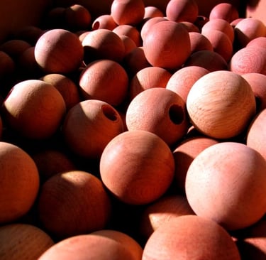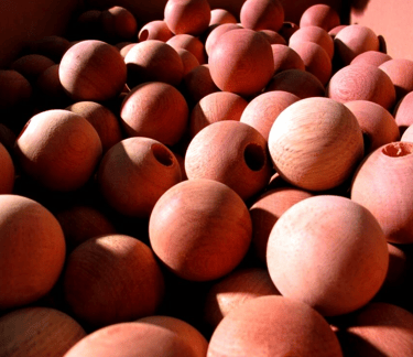 Boules en bois laqué, Support métal – Ensemble fixé sur support PIN.