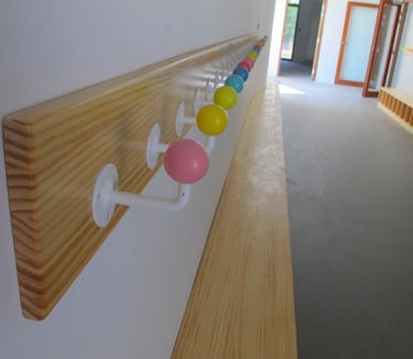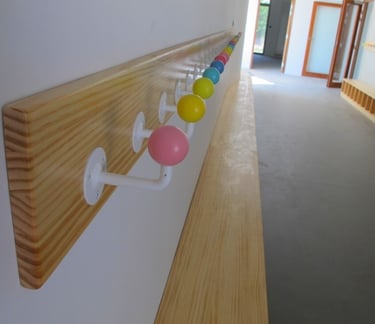 Réalisation de 180 patères réalisées en bois et métal pour une école maternelle.