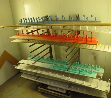 Série d’environs 550 boites, basées sur 3 modèles, pour le stockages de pièces de calibrage.
