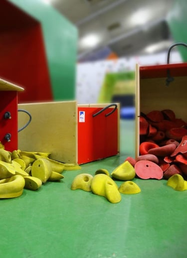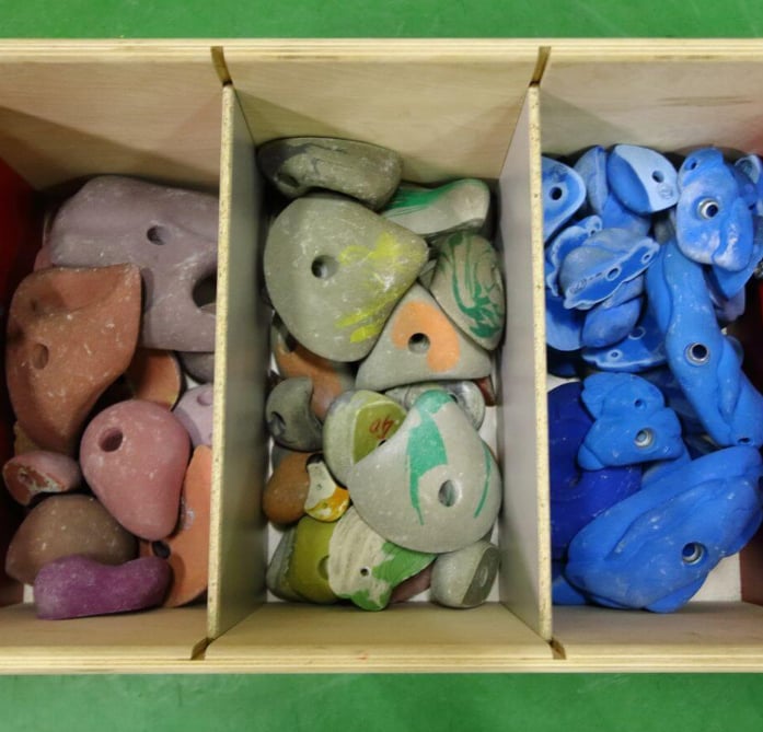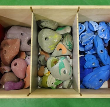 Fabrication de caisses de stockage de prises d’escalade. Visible à AUBIN – 64.